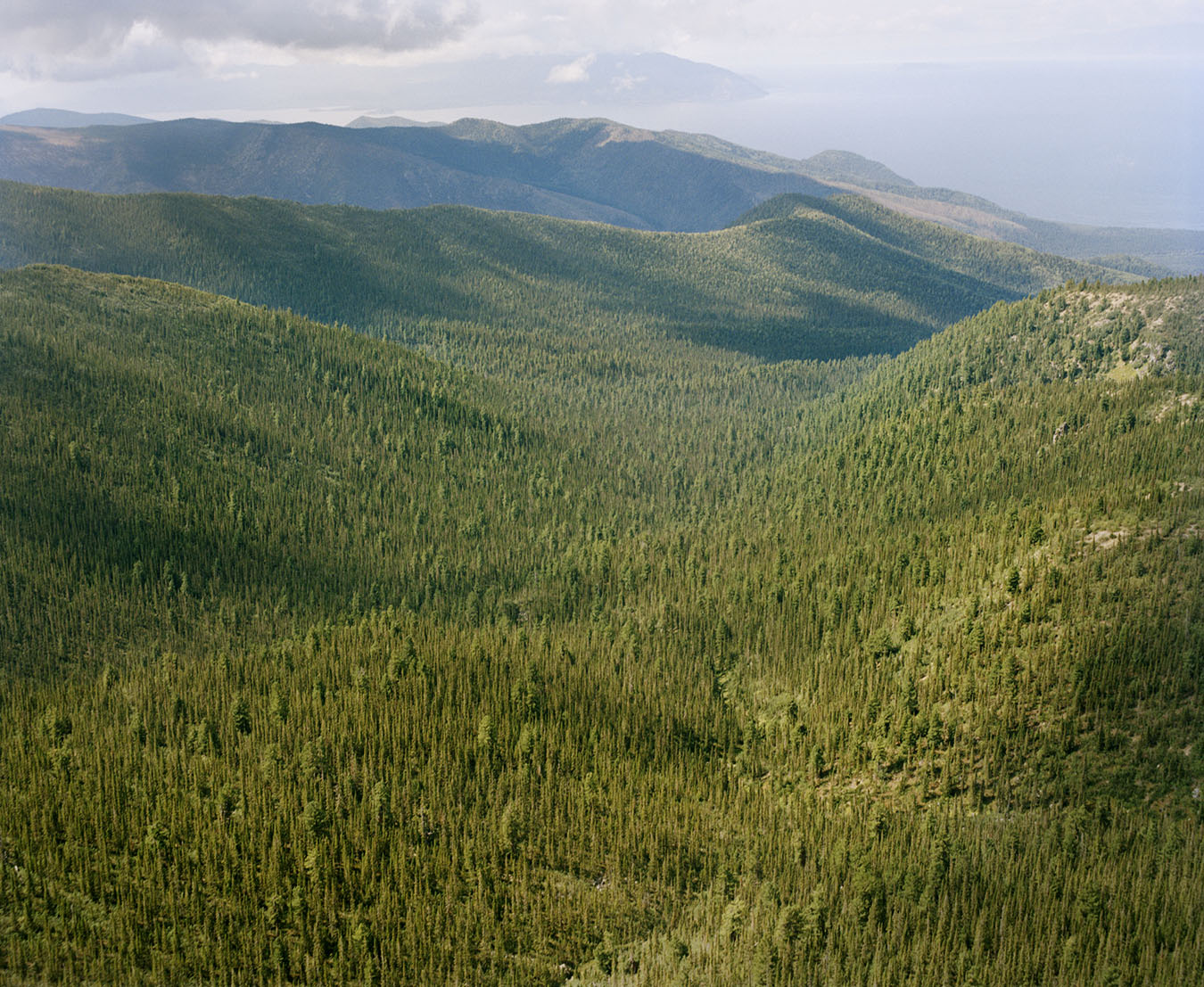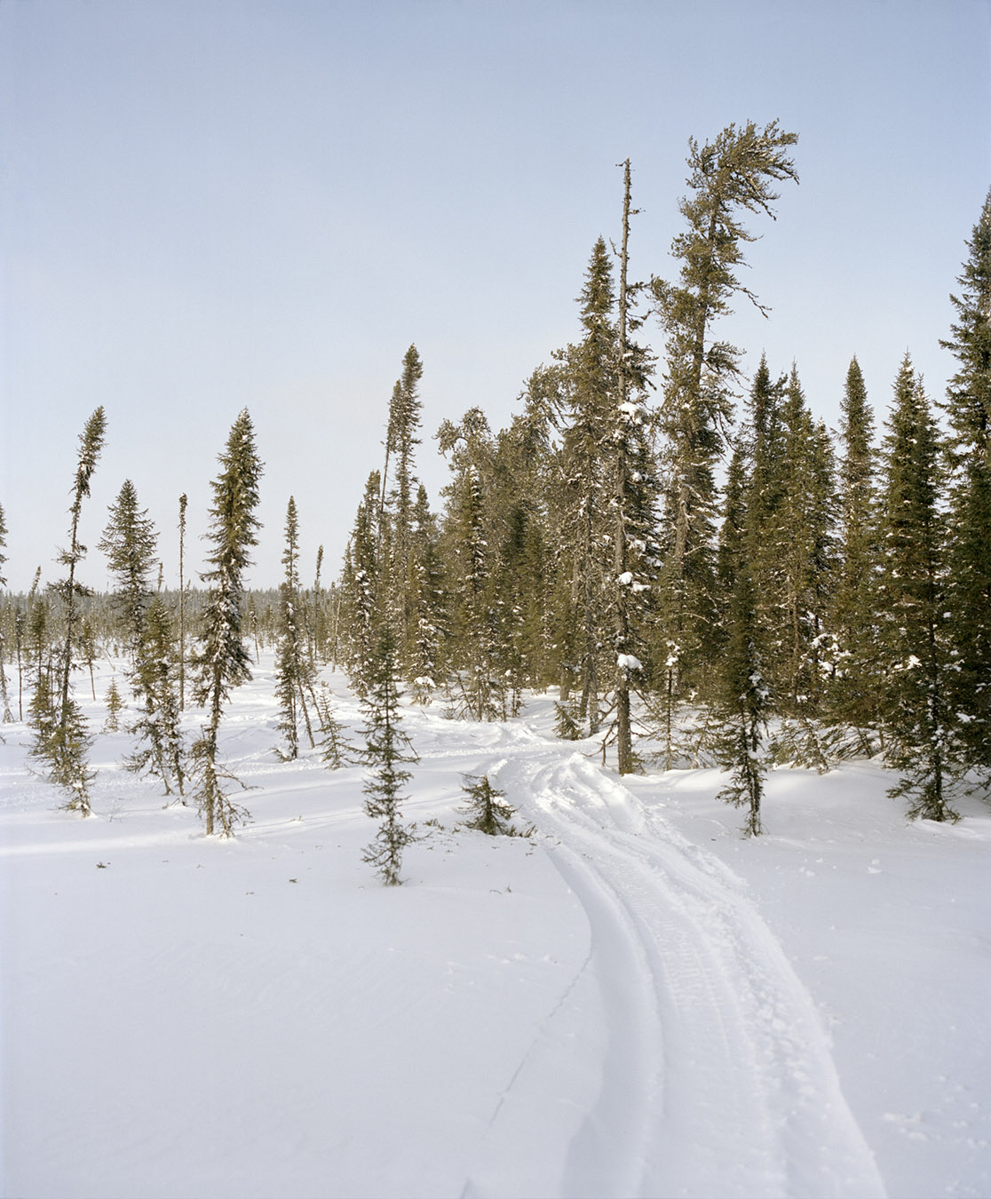 A 150-km journey takes us through the boreal forests of Northern Canada. Here there is little clear-cutting to be seen. The trees in this area were cut down thirty years ago; in the meantime a new generation of conifers has sprung up from the earth.