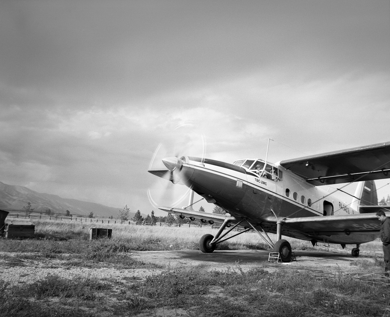 Mikhail Zubov, Senior Pilot Scout at Aviales, is sitting in an antique Antonov plane, which is going to drop provisions for a group of parachutist firemen in the remote forest of a nature reserve.