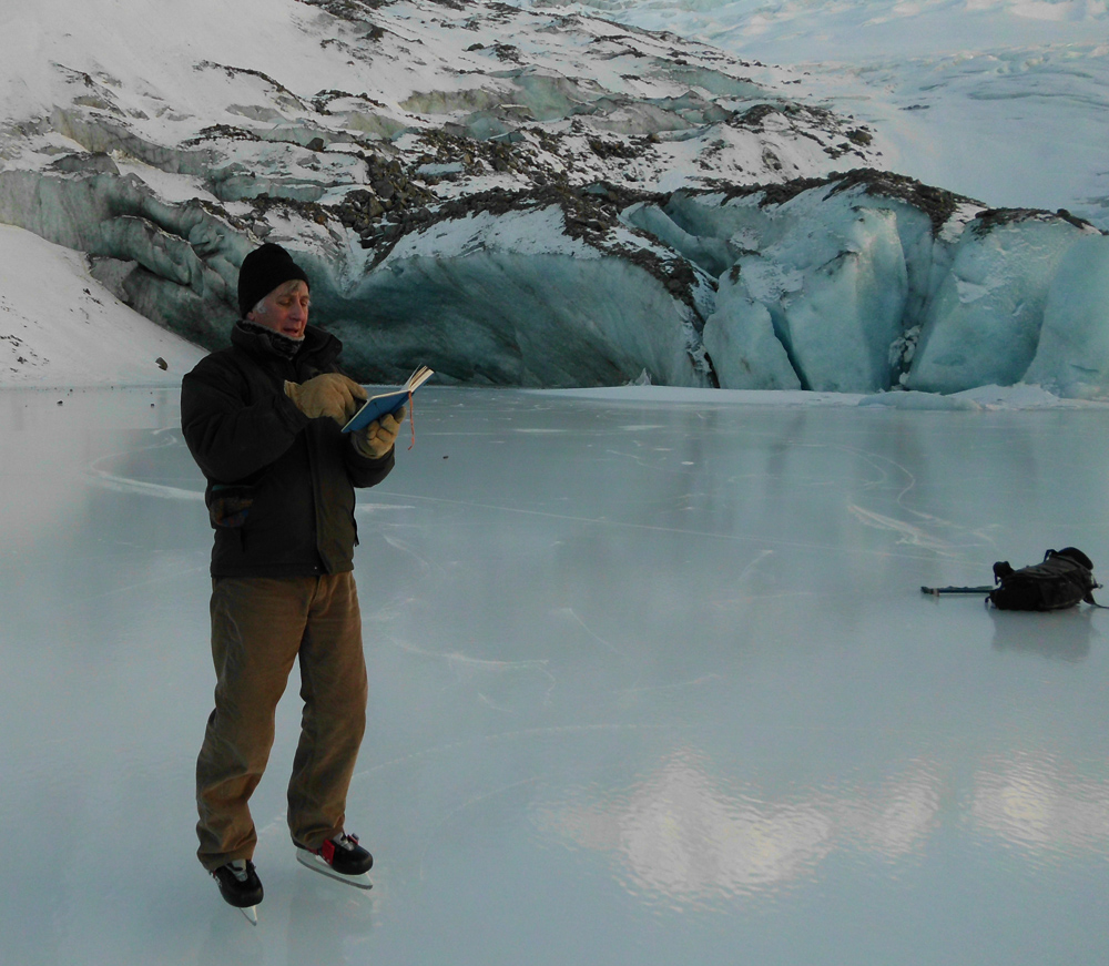 With vast amounts of ice locked in mountain glaciers and ice sheets, Alaska has one of the largest areas of glaciation in the northern hemisphere. Cordova-based painter David Rosenthal’s fascination with glacial landscapes has led him to document the retreat of global ice for the past 45 years.