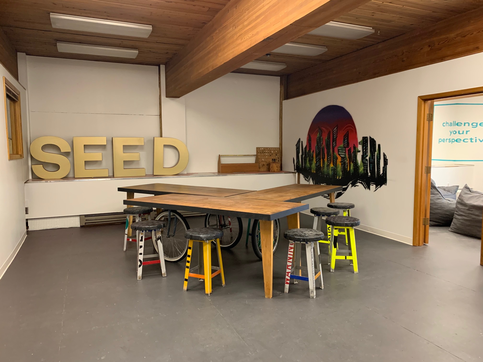 The Seed Lab “House” is a convening space and an experimental space, inside and out. Inside the house and in the Design District, we people together across sectors and across the city for conversations and public programs addressing climate change and the future of Anchorage. At Seed Lab, we work with organizations, individuals and the creative sector. We believe in collaboration. Seed Lab is a space for programs addressing climate change and the future of Anchorage. We organize and facilitate conversations and we provide space for community organizations and efforts to do the same.